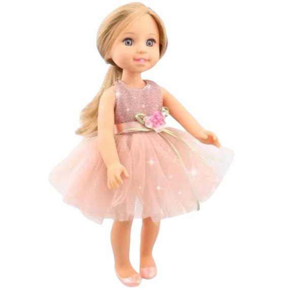 Fashion Girl Doll 15” with Blue eyes, Silky blonde hair, Tutu Party Dress, Ballet shoes and hair combo.